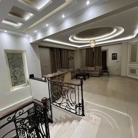 تقع الفيلا المكونة من 3 حمام على بعد 23 دقيقة بالسيارة من مطار القاهرة الدولي وعلى بعد 10 دقيقة بالسيارة عن الجامعة الألمانية بالقاهرة.